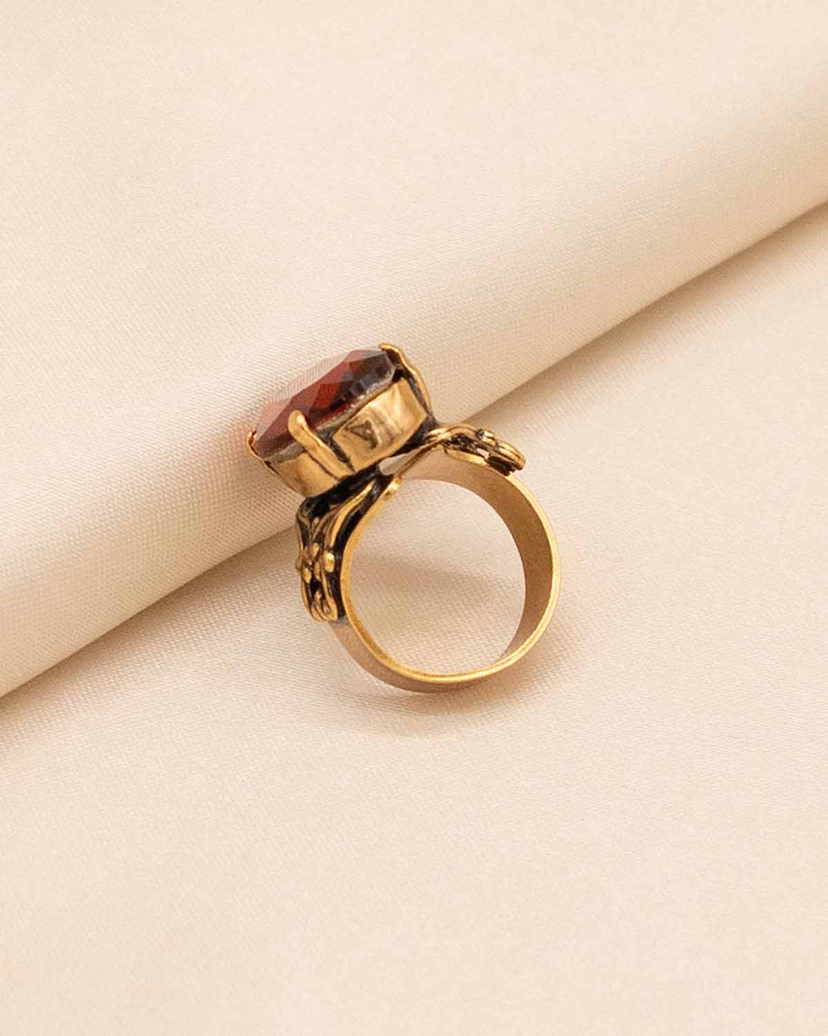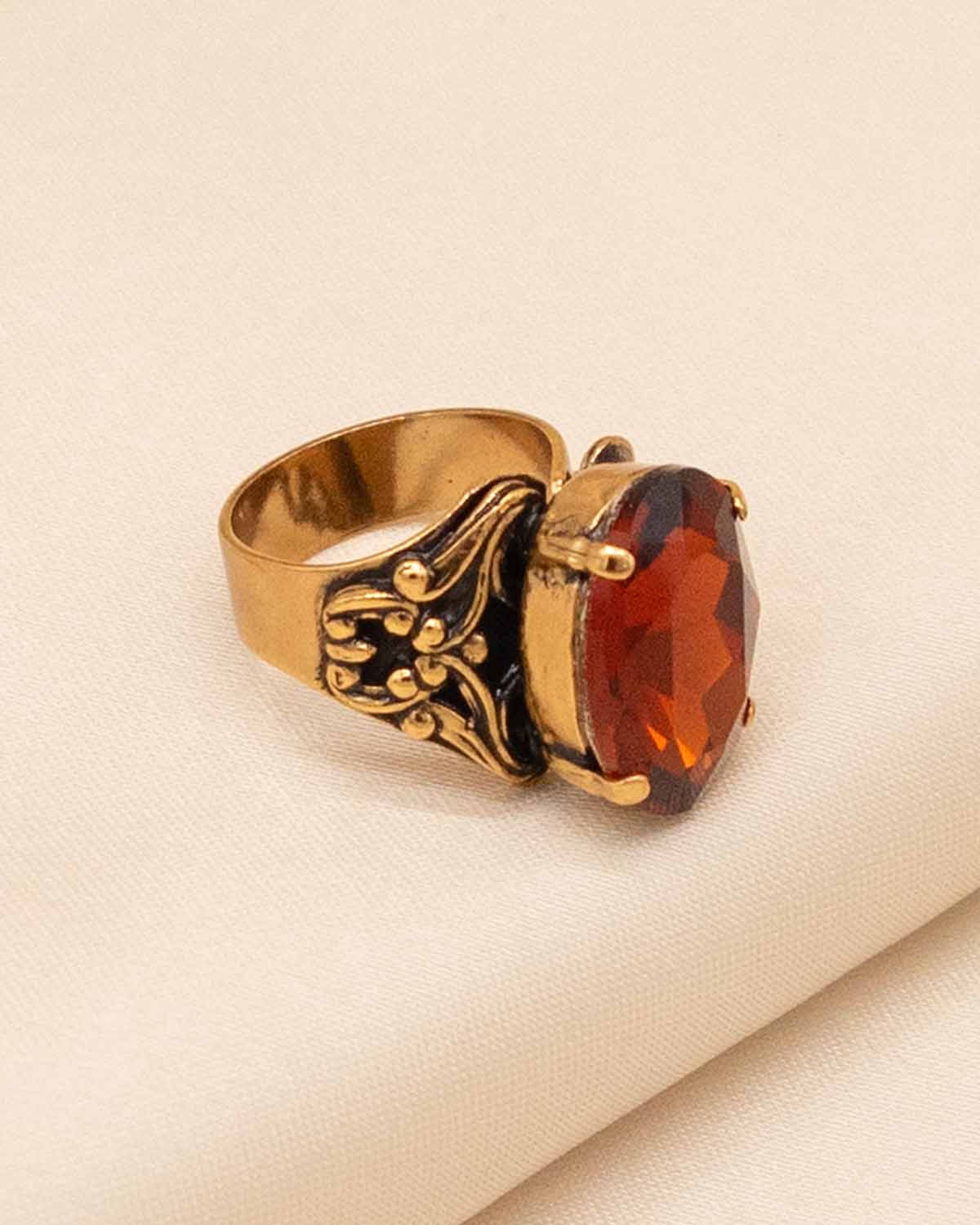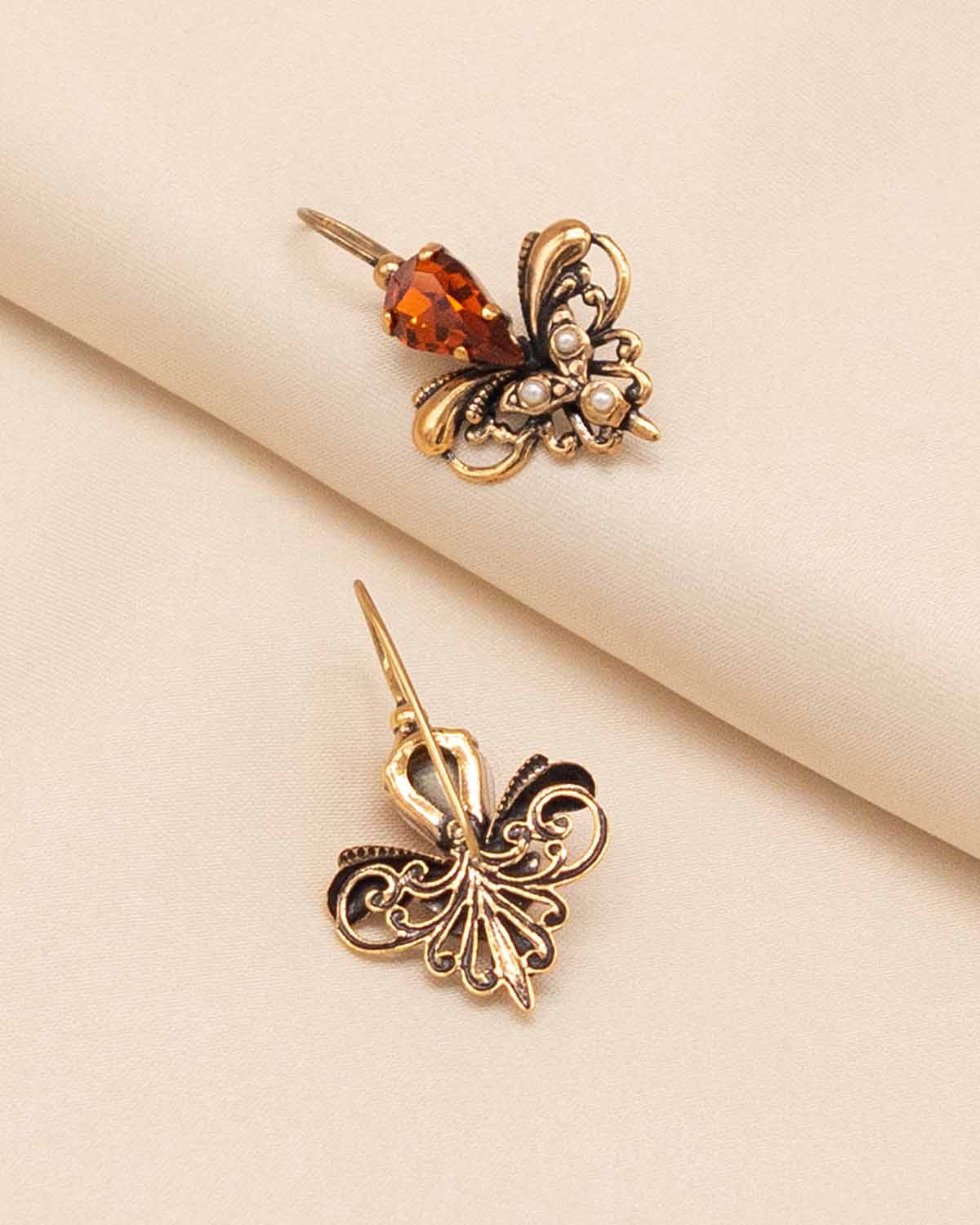 • This artisanal floral earring and ring set is decorated with faceted crystals in a vintage Tuscan style