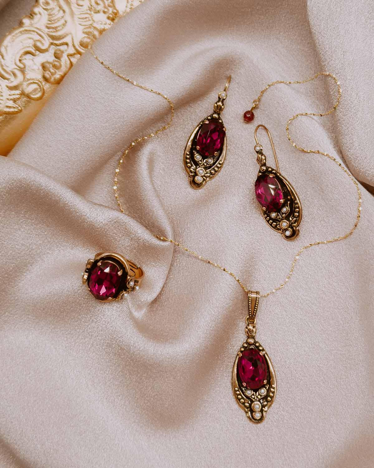 To ensure our jewelry is suitable for everyday wear, all our products undergo a specialised treatment, protecting them from tarnish. Designed to last, our products are 24k Gold Plated and antiqued using timeless and traditional Florentine methods.