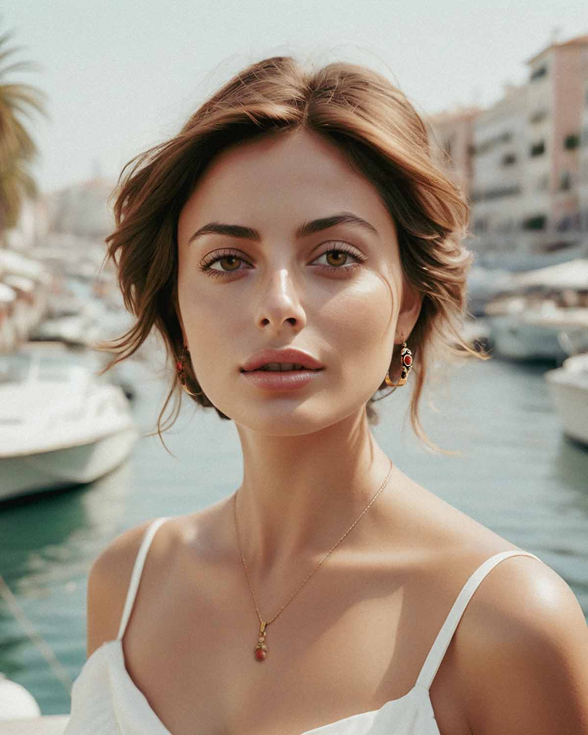La nostra collezione in edizione limitata "La Dolce Vita" è ispirata all'estate sotto il sole italiano. Gioielli d'oro con un tocco di rosso corallo, perfetti per evocare il glamour della costa mediterranea.