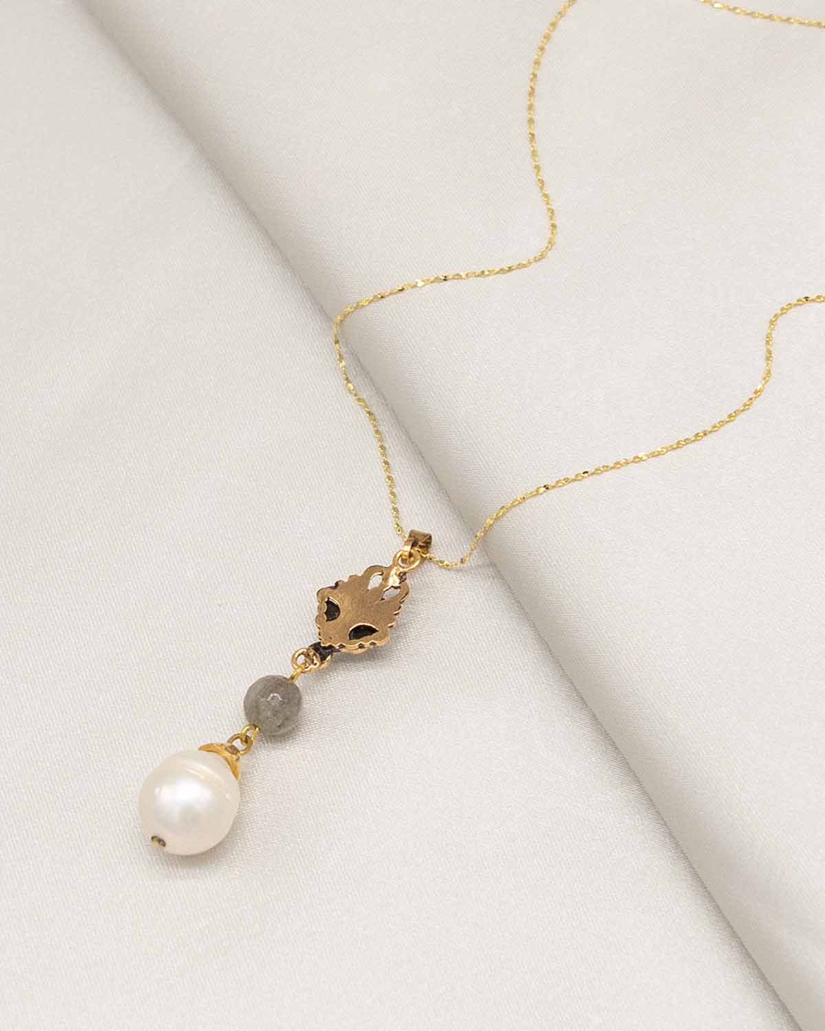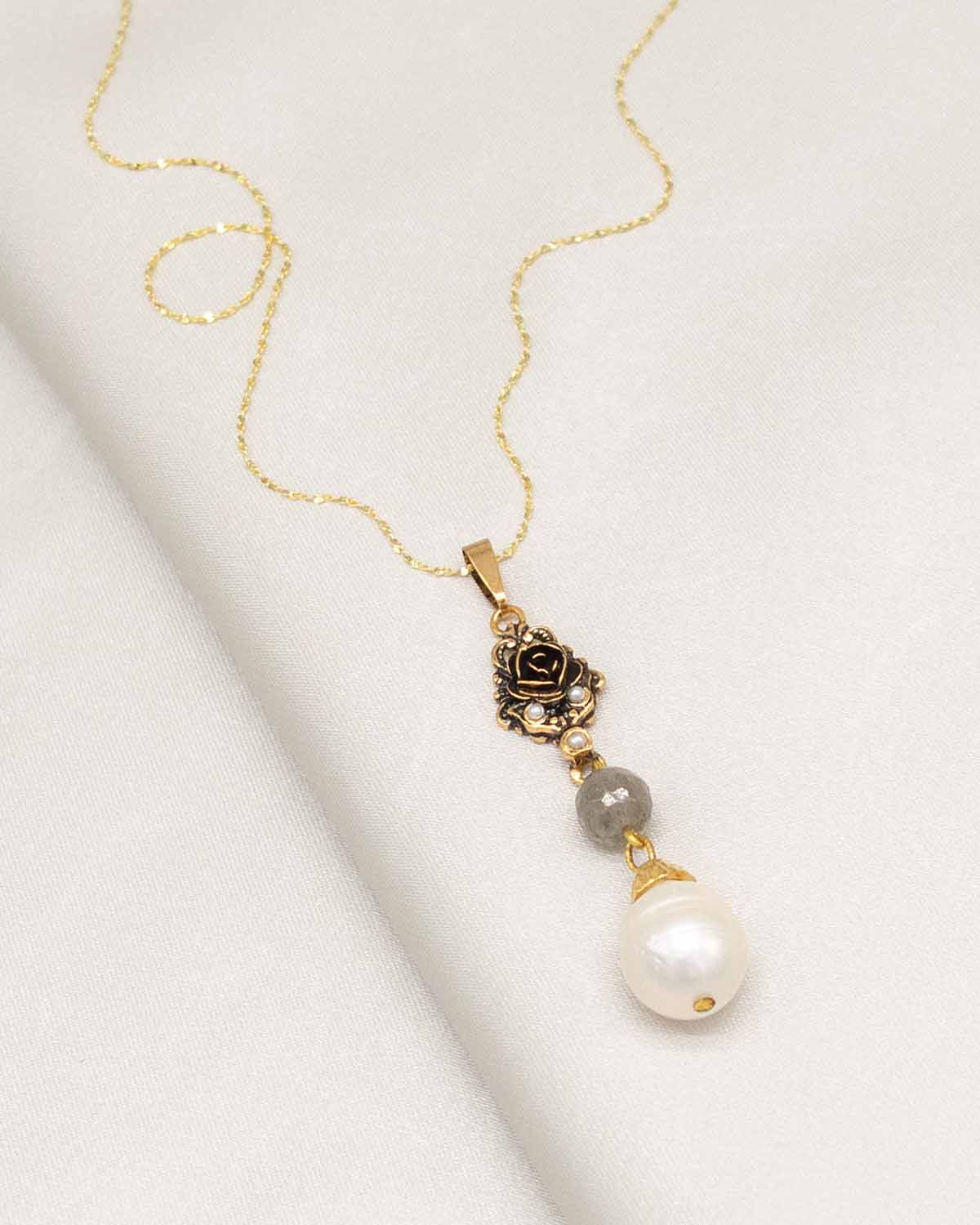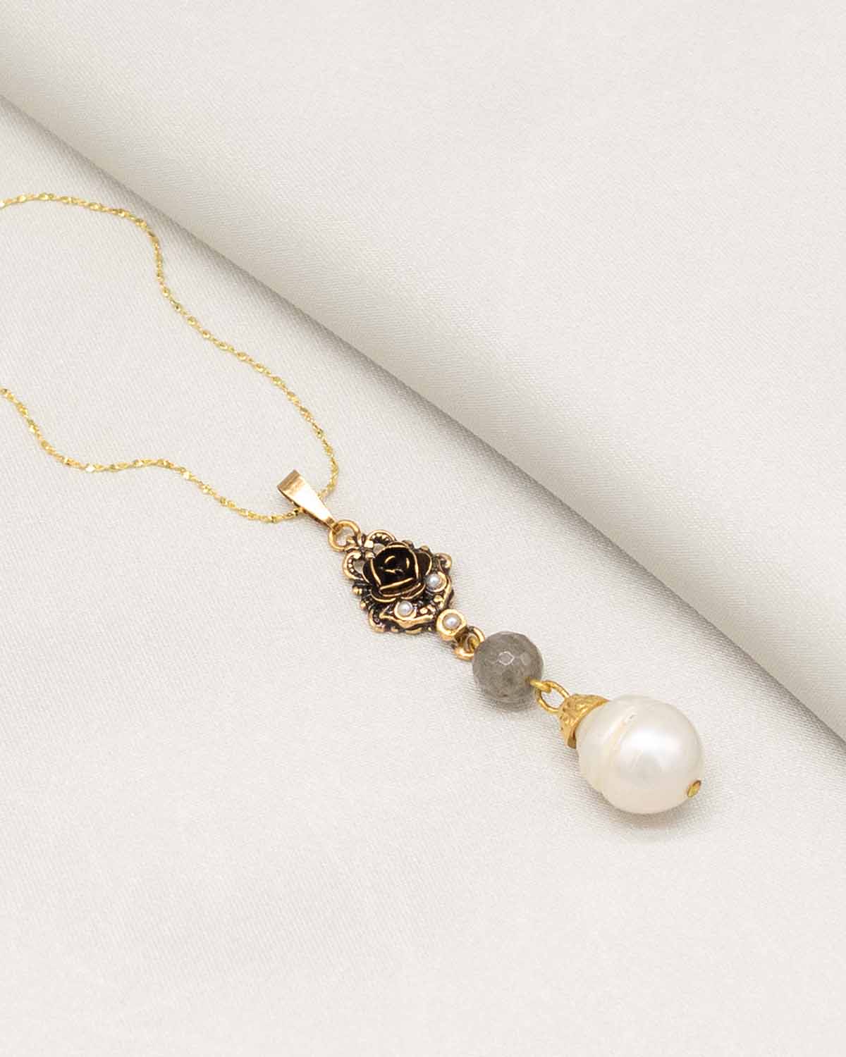 - Questa collana artigianale con pendente floreale è decorata con labradorite naturale e perle barocche d'acqua dolce in stile vintage toscano